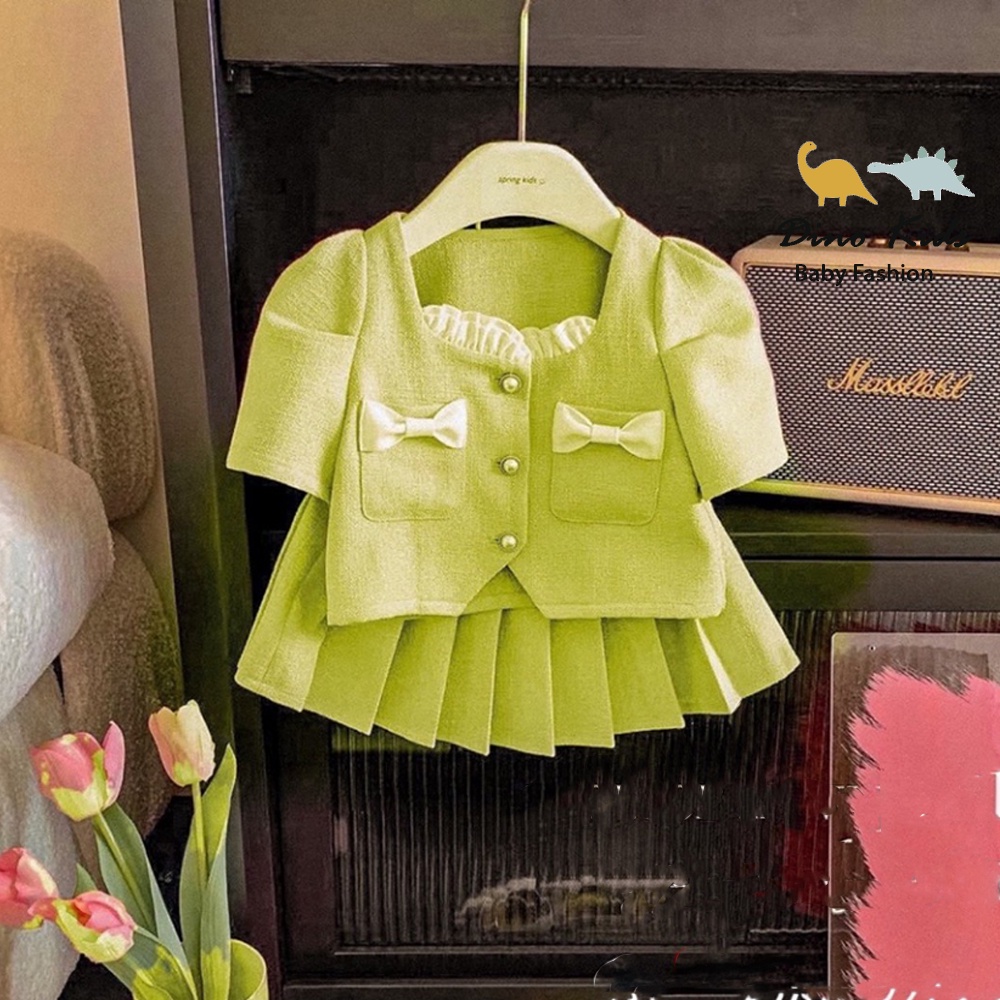 Sét áo nơ vai tiểu thư kèm chân váy siêu xinh cho Bé Gái từ 8-22kg _ HC08