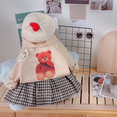 Sét chân váy dạ kèm áo hoodie nỉ da cá cho bé trai gái 8-22kg