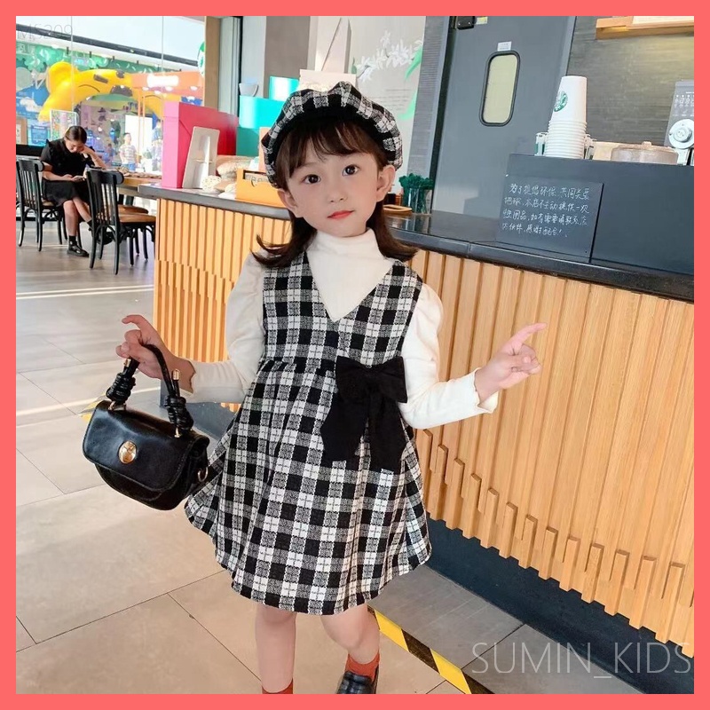 Set váy đầm thiết kế xòe công chúa ngày xuân xinh xắn cho bé trai gái 10-22kg vật liệu dạ len kẻ caro cao cấp A03
