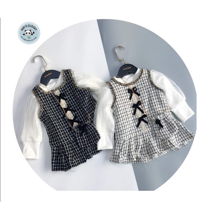 Set Váy Dạ Thu Đông Cho Bé Phối Áo 2Dây Gái Hàng Thiết Kế