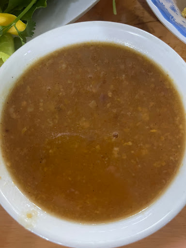 Nước mắm có một chút ít rau củ chua, vị nước mắm hơi ngọt và mặn nhẹ