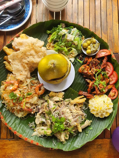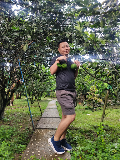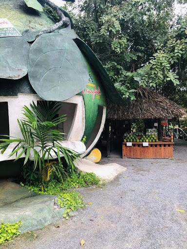 -Không gian: nằm trong vườn bưởi nên rất mát và trong lành, có dòng sông đi ngang qua , ăn uống thì quen sông và vườn bưởi.